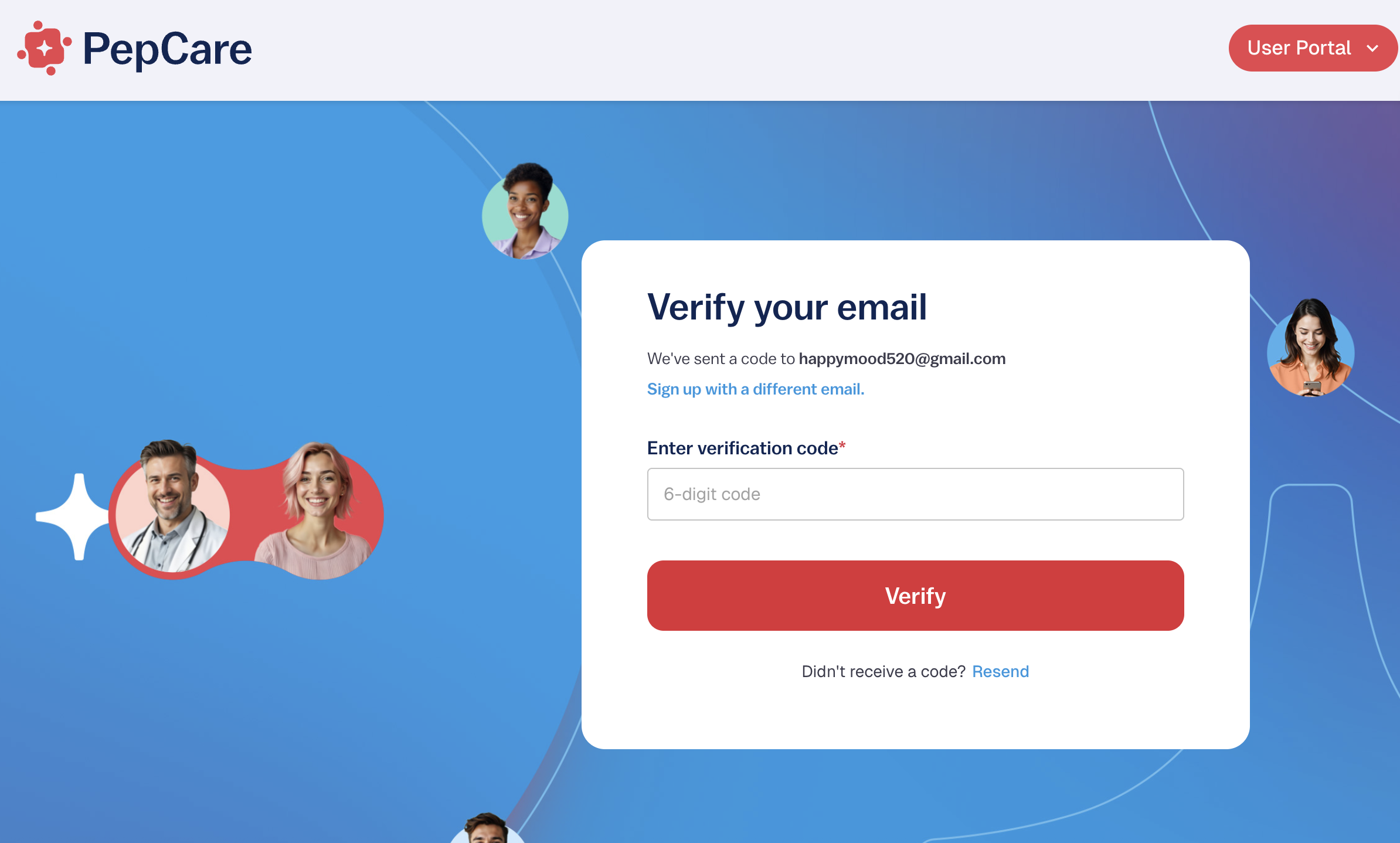When creating a new PepCare account, you can verify your identity with a One-Time Password sent to your email or phone.